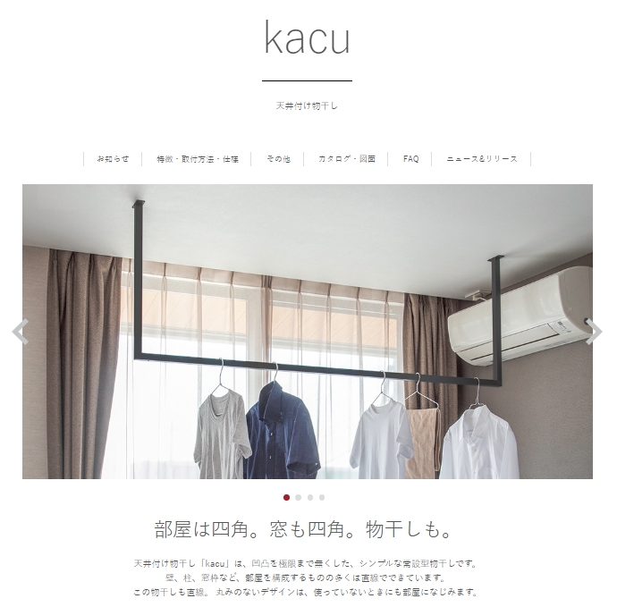 森田アルミのKacuは、パイプの丸みを無くした直線的なデザインが特徴の物干しです。