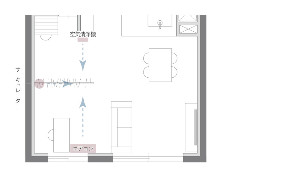 エアコンだけでなく、サーキュレーターと空気清浄機(除湿機能付き)も設置しているので、その時の温度や湿度に合わせて乾燥方法を変えています。