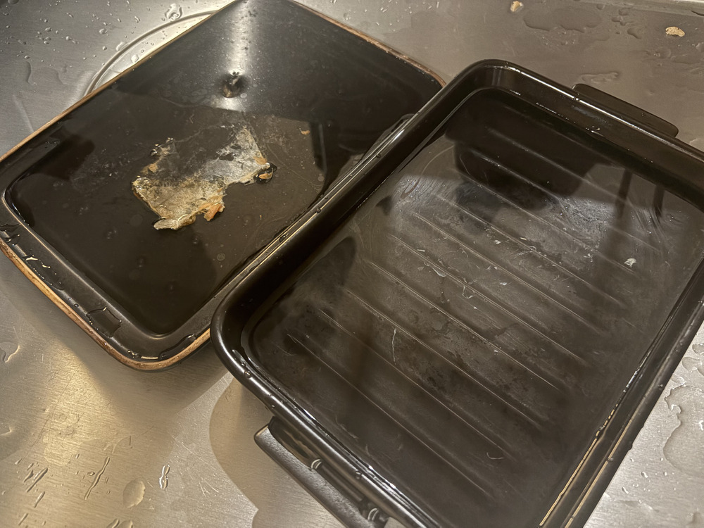 我が家では魚や肉を焼く際に、底がデコボコしたフライパンやグリラーを使うのですが、これがまた汚れのこびりつきがひどいのです。